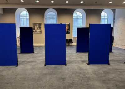 All panels are lightweight yet sturdy and link together using our poster feet for uneven floors. Additional joiners allow panels to cope with uneven surfaces in heritage venues such as churches or listed buildings.